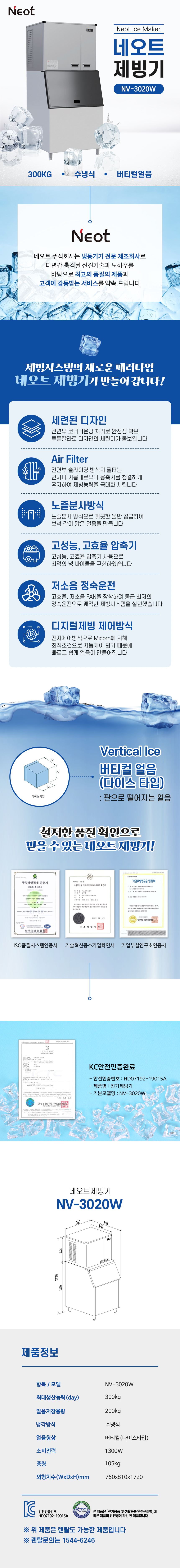 네오트 제빙기 300kg 수냉식 버티컬타입