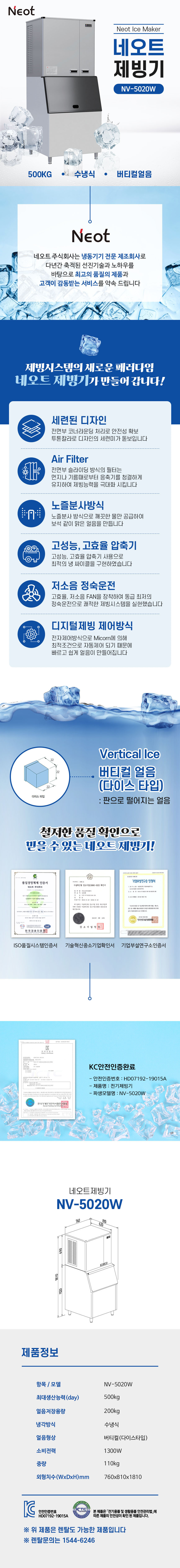 네오트 제빙기 500kg 수냉식 버티컬타입